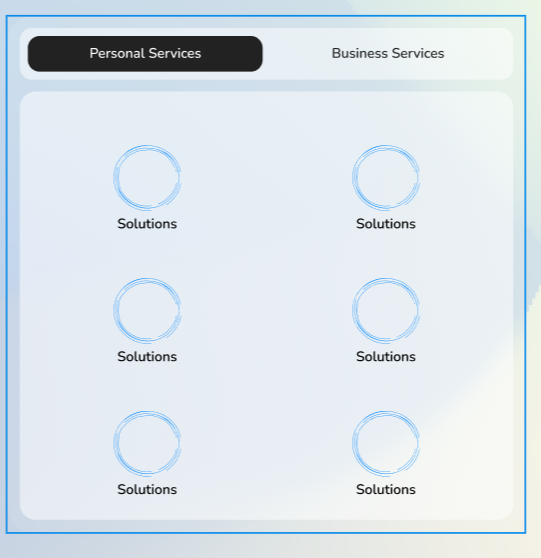 Remove hand-drawn SVG silhouettes (house, person with phone, person with router) and floating parallax animations. Replace with a tabbed services showcase card showing Personal/Business services in a 2-column grid with service-colored icons and links. Cleaner, more functional, and directly guides users to services. Co-Authored-By: Claude Opus 4.6 <noreply@anthropic.com>